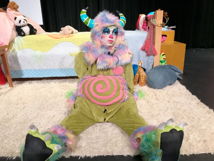 WINTER 2022: Collaborating with Professor Tracey Laird of the Department of Music at Agnes Scott College, I directed the musical for young audiences, Wanda’s Monster. The show ran in the Winter Theatre in the Dana Fine Arts Building on the Agnes Scott campus in late February. With a book by Barbara Zinn Krieger, artistic director of the New York City Children’s Theater, and lyrics and music by superstar singer/songwriter and recording artist Laurie Berkner, the play is based on the children’s picture book of the same title by Eileen Spinelli. It tells the story of five-year-old Wanda and the monster who comes to live in her closet. At first Wanda is afraid of Monster, but with the help of her rock star Granny, she learns that often someone who seems scary can turn out to be not so scary after all.